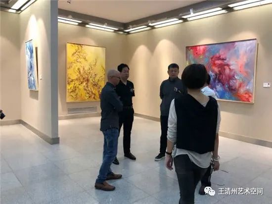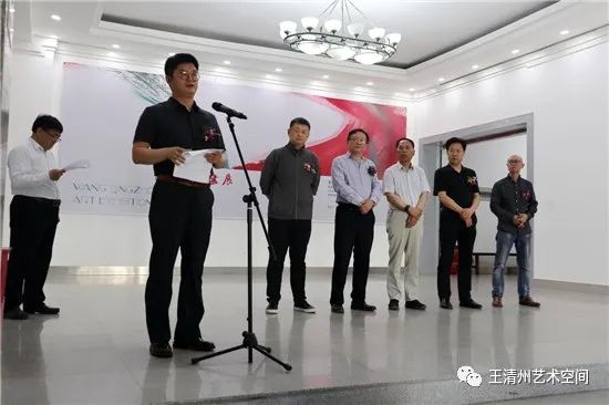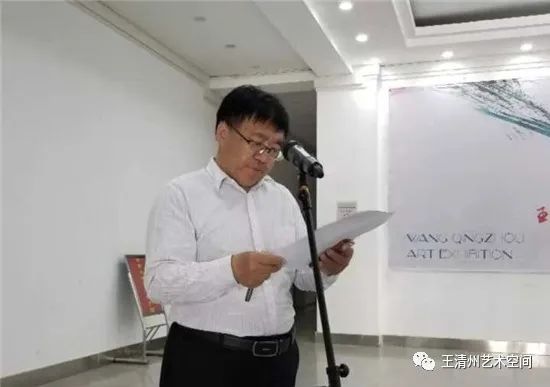 王清州画展现场开幕式由甘肃画院院长助理兼展览中心主任陆志宏先生主持,中央美术学院艺术管理与教育学院副院长、教授赵力先生,画家、策展人曹帆先生,王清州的同学,平凉市书协副主席杨凡先生,本次展览画家王清州先生先后在开幕式上发言。赵力先生在致辞中说:“透过王清州的作品,我们可以看到的最大特点就是自由,相比取悦于观众,他更在乎自我的审美和追求。事实上在他新常态的作品里,他的水墨不是为了表达某个造型或者某种空间,而是自我内心的精神世界。另一显著特点是他的书写性从油画中表现出来,油画的厚涂法使得画面形成了沉着的气质,这种创作手法颇见功底,通过中国水墨与油画的结合,油画和国画材质的结合,以及中西方的绘画结构的结合,他将中西方的传统天衣无缝地衔接起来,表达属于他自己的笔墨语言。艺术家若能保持充分自由的内心,加之探索精神性的追求,那么呈现在作品中的品质必定是前所未有的境界。从王清州的作品中,我看得出他是一个极有情怀的艺术家。我们在欣赏其创作的同时,也能从他的绘画中认识到真正的水墨,从而体会他对书法的感悟。以中国的传统的标准为基础,他的油画表现更是焕然一新,重在新意感。这是来自于不同文化的展现,同时又能够实现对自我语言的表达。于我而言,王清州的作品,最妙之处在能够融入现代和当代的关键性绘画元素,通过自由的笔法,将中心环节和他个人的精神合理搭配,以此表达对文化的认识。我认为这种表达方式是未来的发展趋势,因此我极为肯定清州老师的创作。我肯定他绘画风格的放松自如,也希望他能够创作出更多令人耳目一新的作品,这些作品得以让我们感受到中西文化的交融并由此互学互鉴。”据悉,“王清州画展“将持续至2018年5月21日(甘肃美术馆)