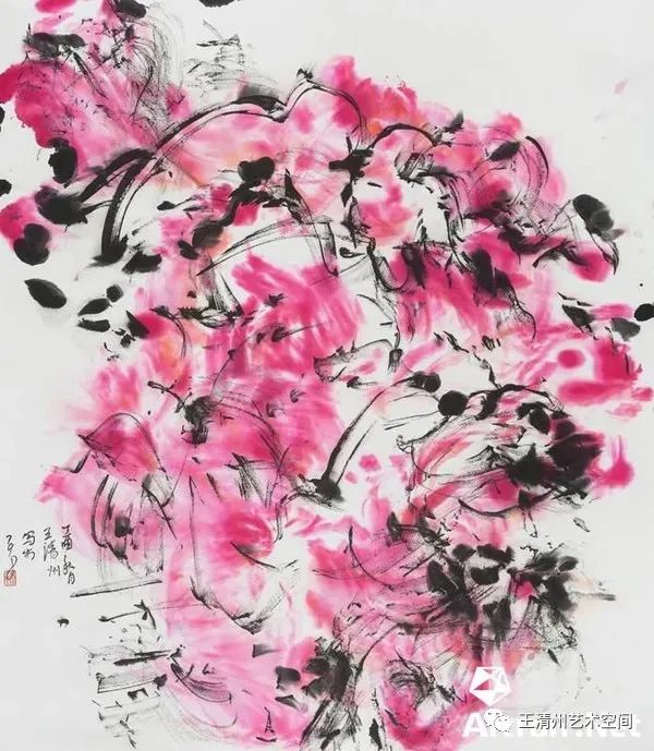 “再者就是给我印象最深的是王清州2012年创作的布达拉宫系列作品,应该说这是我个人非常欣赏的一点就是,他没有对西藏拉萨布达拉宫的这些建筑物本身在外形和结构进行描写,而是在作品中间看到的似乎是一些跳跃的一种舞蹈性的这种笔墨画笔处还有这个色彩。