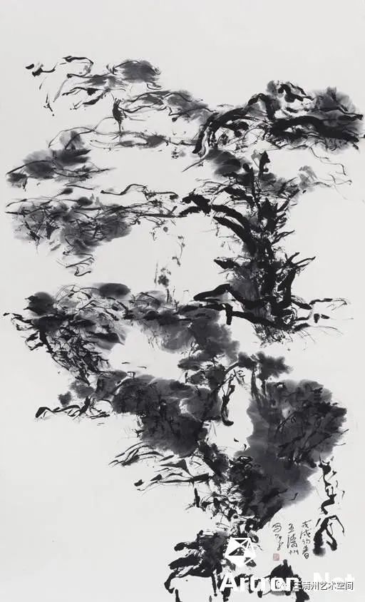 他更像是音乐就是灰色彩和笔墨的一种音乐,建筑是布达拉宫大建筑。是一种凝固的音乐,那我们也可以讲绘画是一种流动的跳跃的或者是流动的音乐,