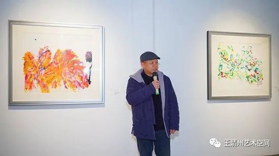 谢谢王冠英老师精彩的致词。王冠英老师刚刚到,之前翻看王清州老师的微信朋友圈小图片,但是今天看完原作以后,心里的感受又不一样了。接下来邀请这次展览的艺术家王清州老师,做最后的一个致词,感谢!