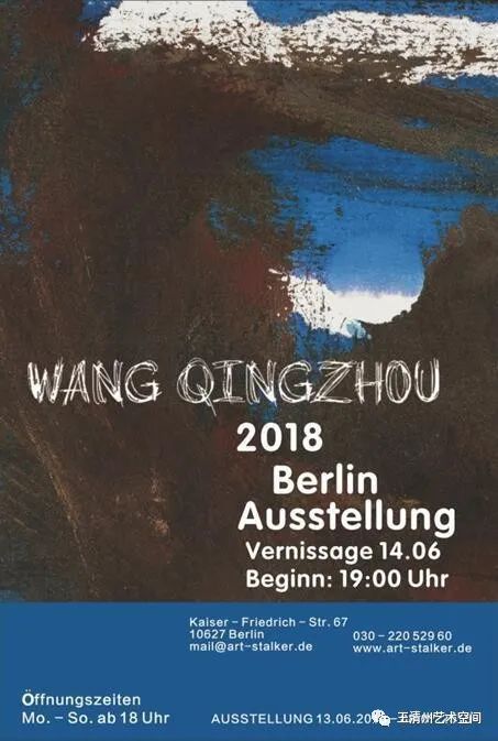 中国当代艺术家王清州(Wang Qingzhou 2018 Berlin Ausstellung)作品展2018年6月14日在德国柏林ART STALKER画廊开幕, 20余幅作品吸引了众多当地民众参观。德国艺术家沙沙.普希金在开幕现场接受采访时说,王清州先生的作品没有门户之见,从中西画中学习到最好的东西,赋予作品深厚底蕴,他善于博採众长,且作品体现了中西文化交融的特点,传统文化得以发扬,现代元素也运用的淋漓尽致,这个有机的过程丰富了作品的文化内涵。本次展览ART STALKER画廊主办,出席开幕式的主礼嘉宾还有华裔艺术家李玖玲、张佳音、英国艺术家DEL、法国艺术家戴维斯等。展览将持续至7月8日